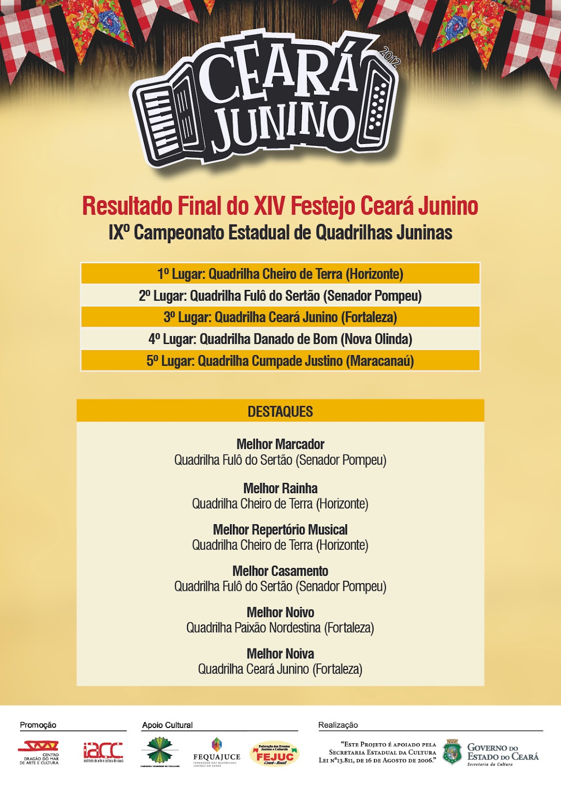 É importante ressaltar que sabe-se da grande contribuição às artes cênicas no Ceará (já que o Governo do Estado deixa esta lacuna) que iniciativas privadas dão, ao promoverem festivais. O mérito e os aplausos são inegáveis.