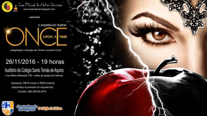 A turma infanto-juvenil (pré-adolescentes de 11 a 13 anos) do nosso CURSO LIVRE DE ARTES CÊNICAS (TEATRO - CIRCO - MÍMICA) no COLÉGIO SANTO TOMÁS DE AQUINO, vai encerrar as atividade de 2016 apresentando o espetáculo teatral ONCE UPON A TIME (ERA UMA VEZ...).