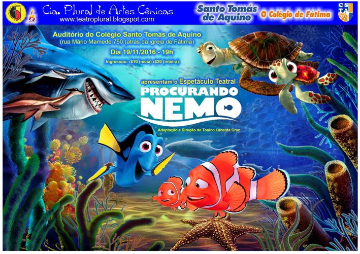 O espetáculo de encerramento de 2016 da nossa turma infantil de ARTES CÊNICAS (teatro - circo - mímica) no COLÉGIO SANTO TOMÁS DE AQUINO será PROCURANDO NEMO.