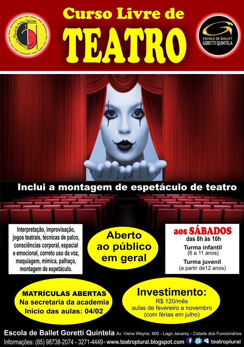 A CIA. PLURAL DE ARTES CÊNICAS mantém parceria também com outros colégios de fortaleza, ministrando aulas de teatro, circo e mímica.