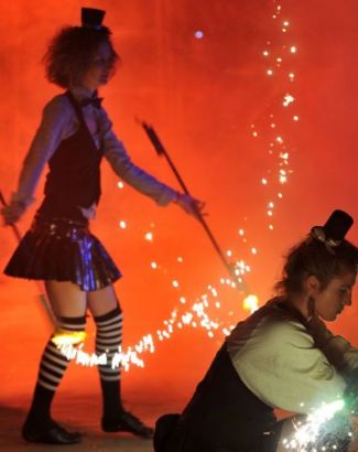A CIA. PLURAL DE ARTES CÊNICAS também realiza performances com fogo - pirofagia e piromalabarismo, utilizando diversos aparelhos e equipamentos.